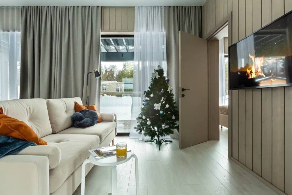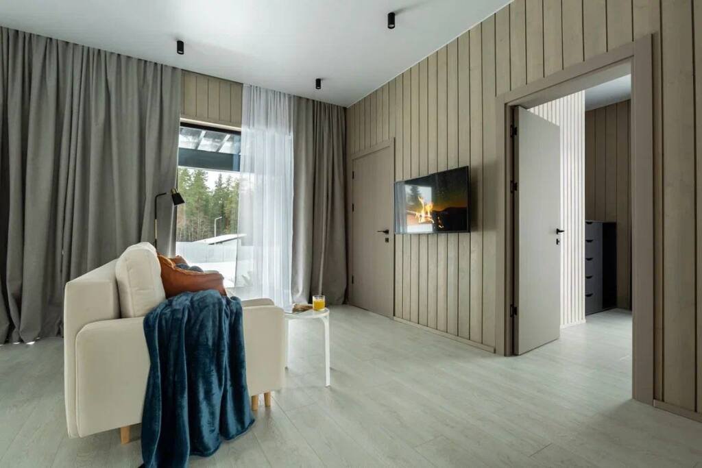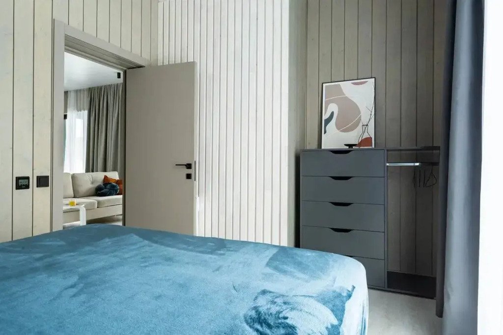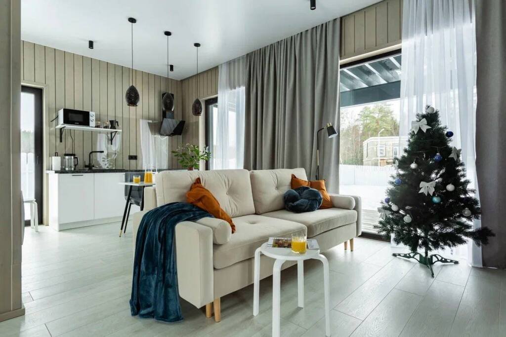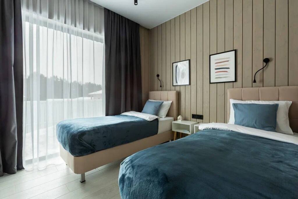 В доме есть всё для отдыха на 6 гостей: 2 спальных комнаты и кухня-гостиная, постельное бельё и полотенца, кровати трансформеры, 160 см делится на два места по 80 см. Также в распоряжении гостей есть посудомоечная машина, духовая печь, микроволновая печь, тёплые полы во всех комнатах, посуда ручной работы на 6 гостей.