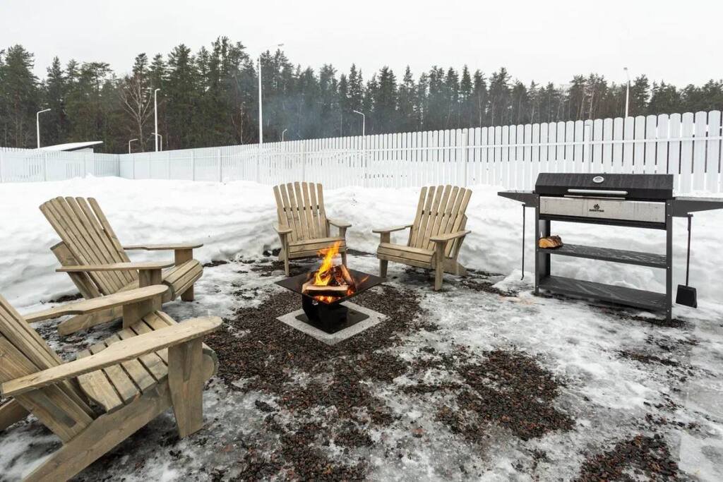 К услугам гостей предоставляются: гейзерная кофеварка и молотый кофе, телевизор со Smart TV, сауна с панорамным окном, настольные игры. На участке находятся гриль-зона с костровой чашей и барбекю, парковка на 2-3 автомобиля, закрытый забором контур.