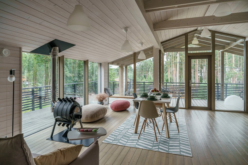 Частный дом Пространства три тома у Финского залива находится в Песках. Неподалёку: природный заказник «Гладышевский», парк «Марьина Гора» и Линдуловская роща.