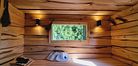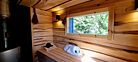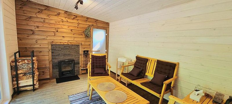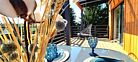 Уникальная парная с отделкой из необработанной липы. Фоновая многоцветная подсветка на пульте управления. Панорамное окно с видом на огромные ёлки. Шапки, простыни, ароматические масла, вкусный чай, печенье предоставляются. Веники дополнительно - от 500₽.