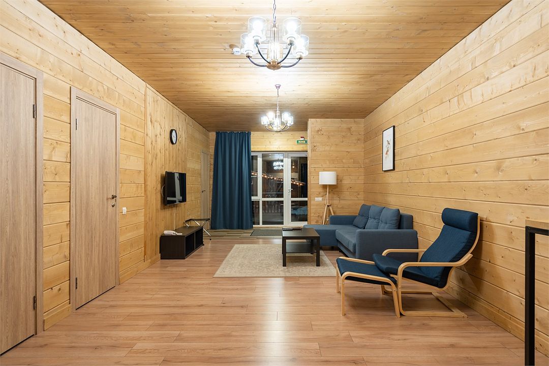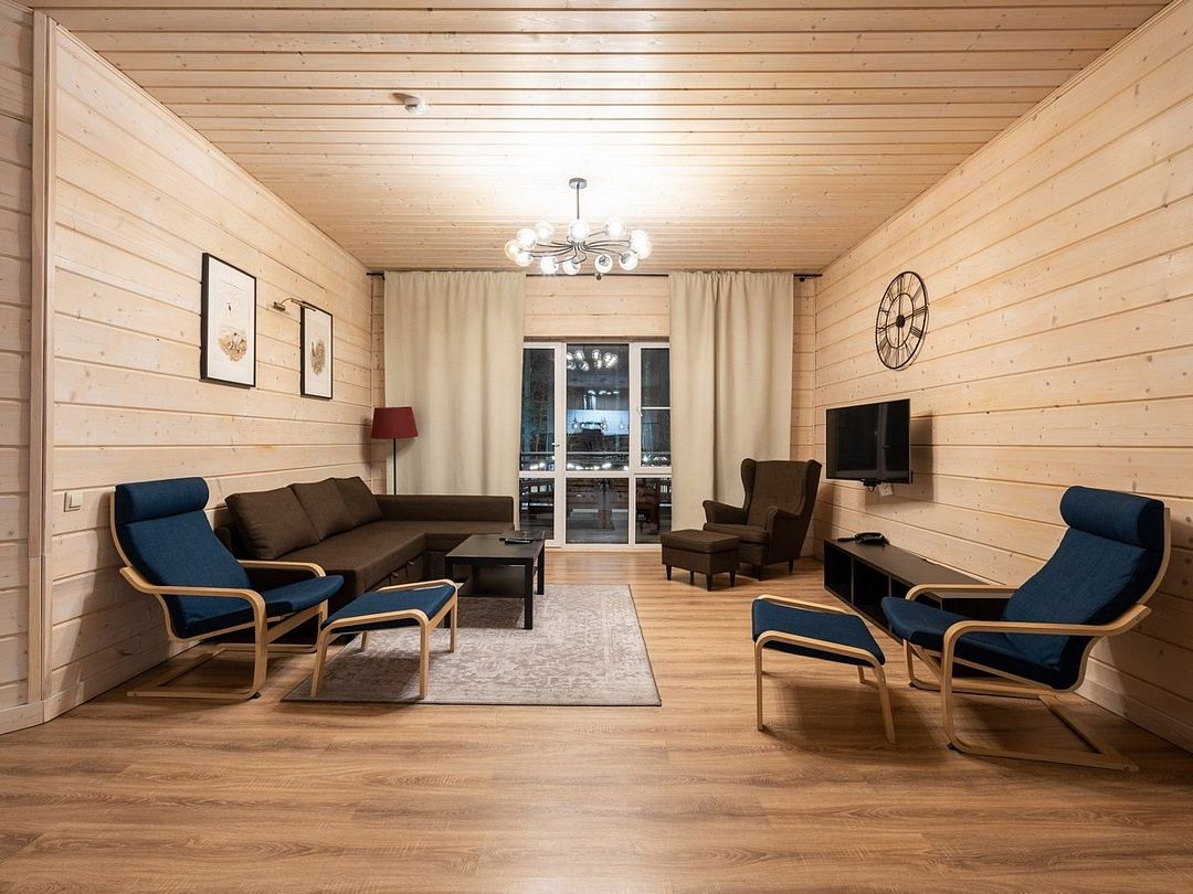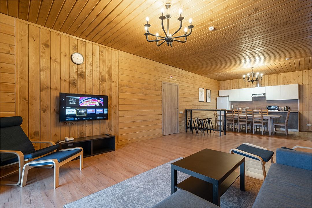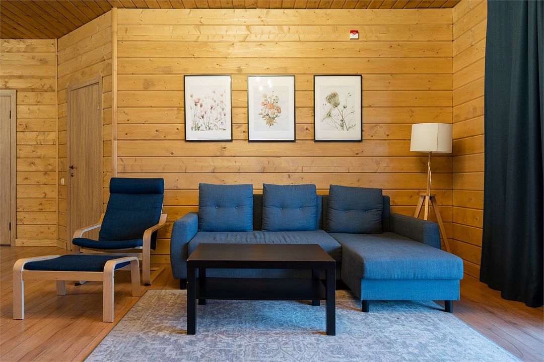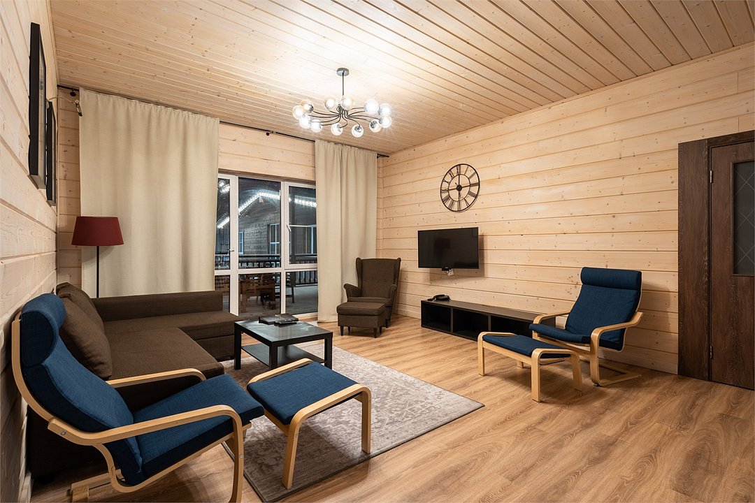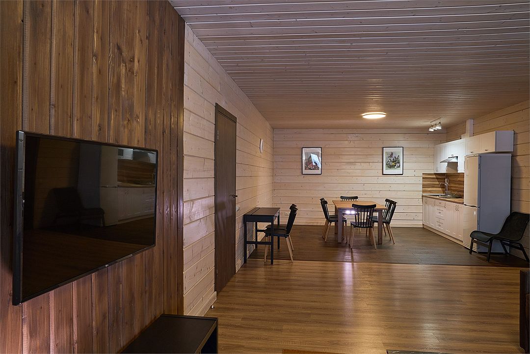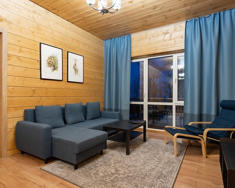 Это большие дома со стильным интерьером и огромными террасами с видом на Вуоксу. Первый и второй этажи — отдельные шале с независимыми входами, расположенными на разных уровнях. Второй этаж — это шале на 8-10 персон, а первый этаж — шале на 6-8 персон.