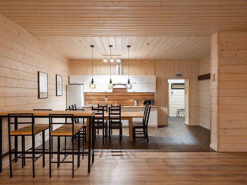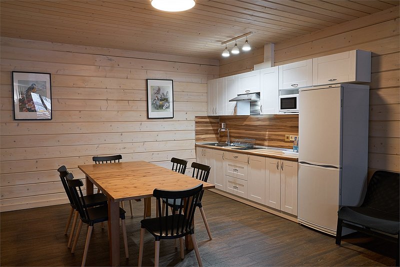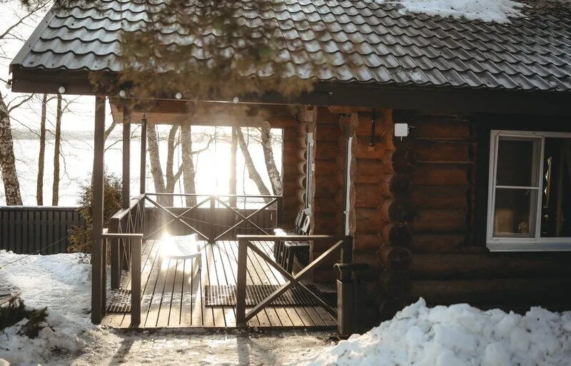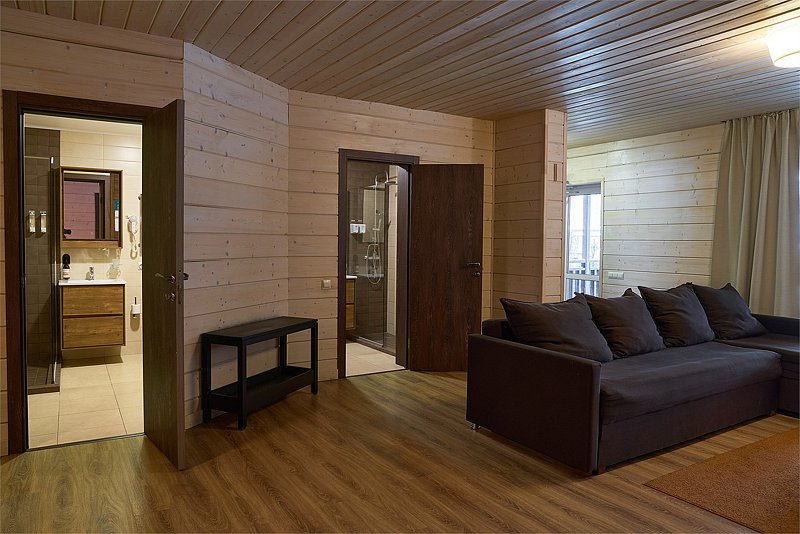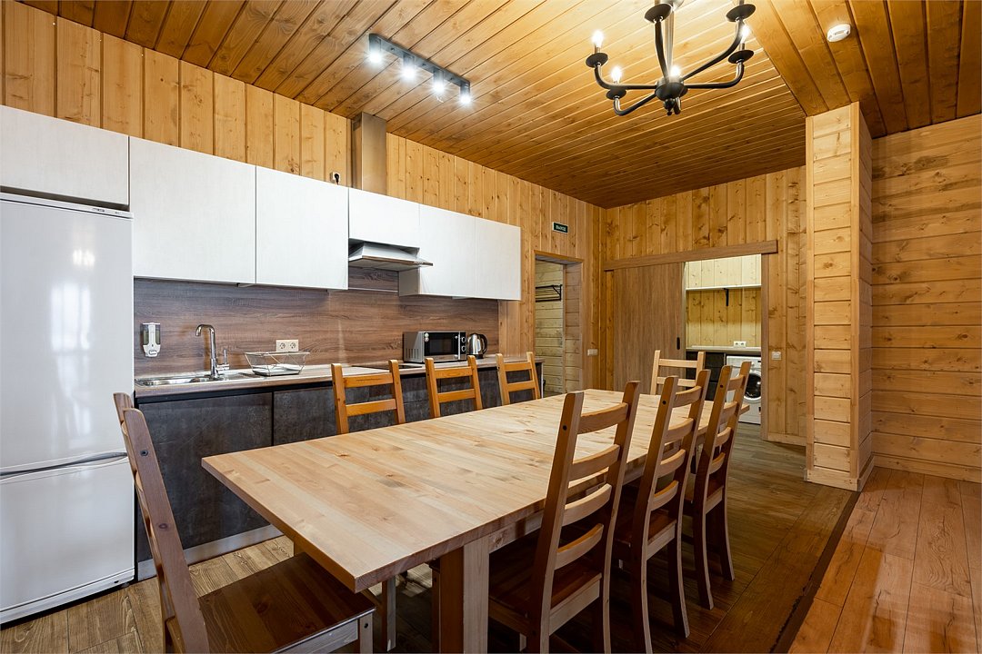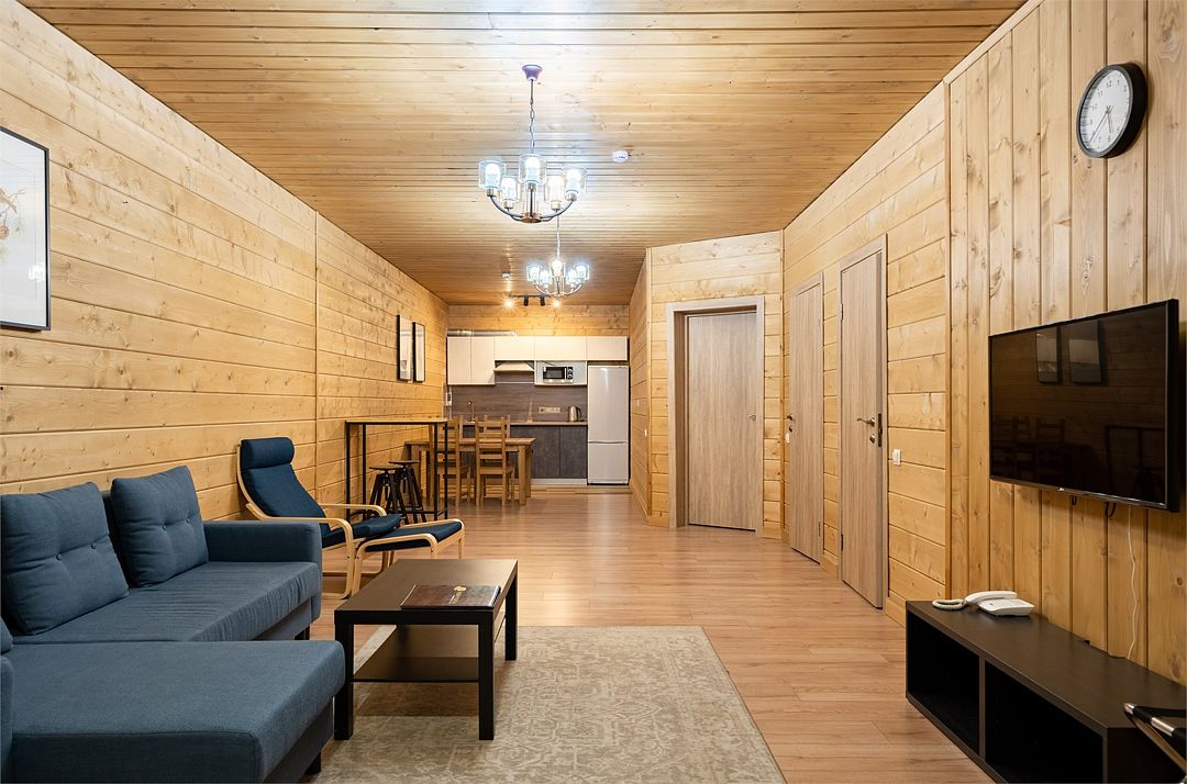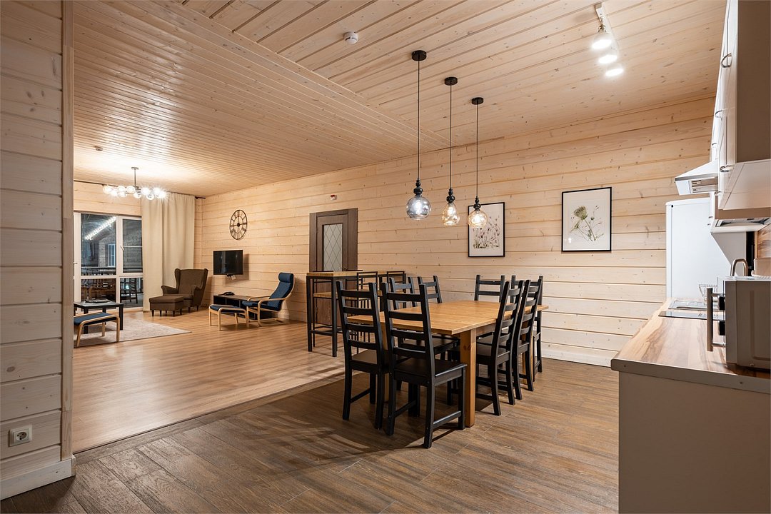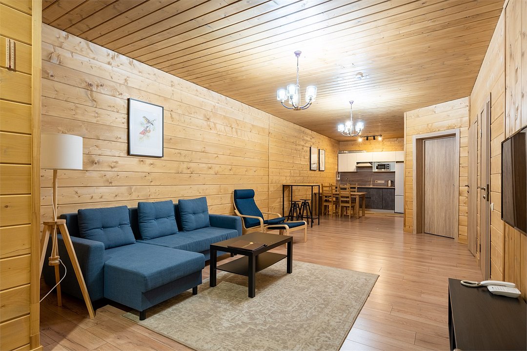 Это большие дома со стильным интерьером и огромными террасами с видом на Вуоксу. Первый и второй этажи — отдельные шале с независимыми входами, расположенными на разных уровнях. Второй этаж — это шале на 8-10 персон, а первый этаж — шале на 6-8 персон.