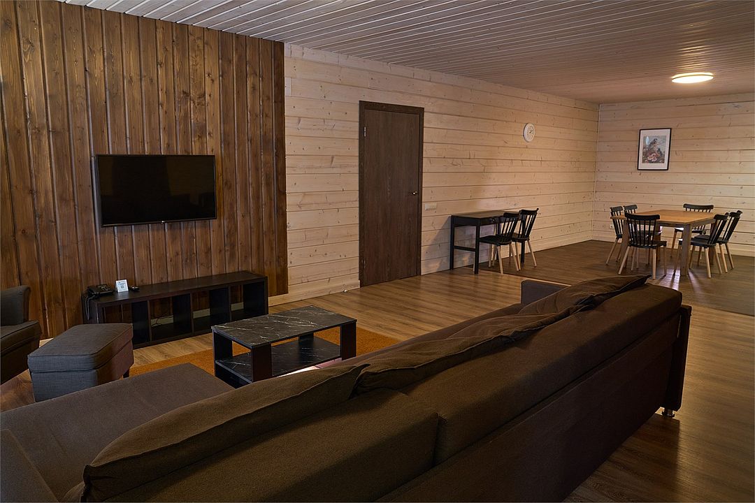 Это большие дома со стильным интерьером и огромными террасами с видом на Вуоксу. Первый и второй этажи — отдельные шале с независимыми входами, расположенными на разных уровнях. Второй этаж — это шале на 8–10 персон, а первый этаж — шале на 6–8 персон.