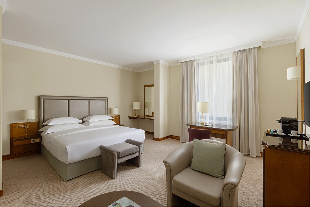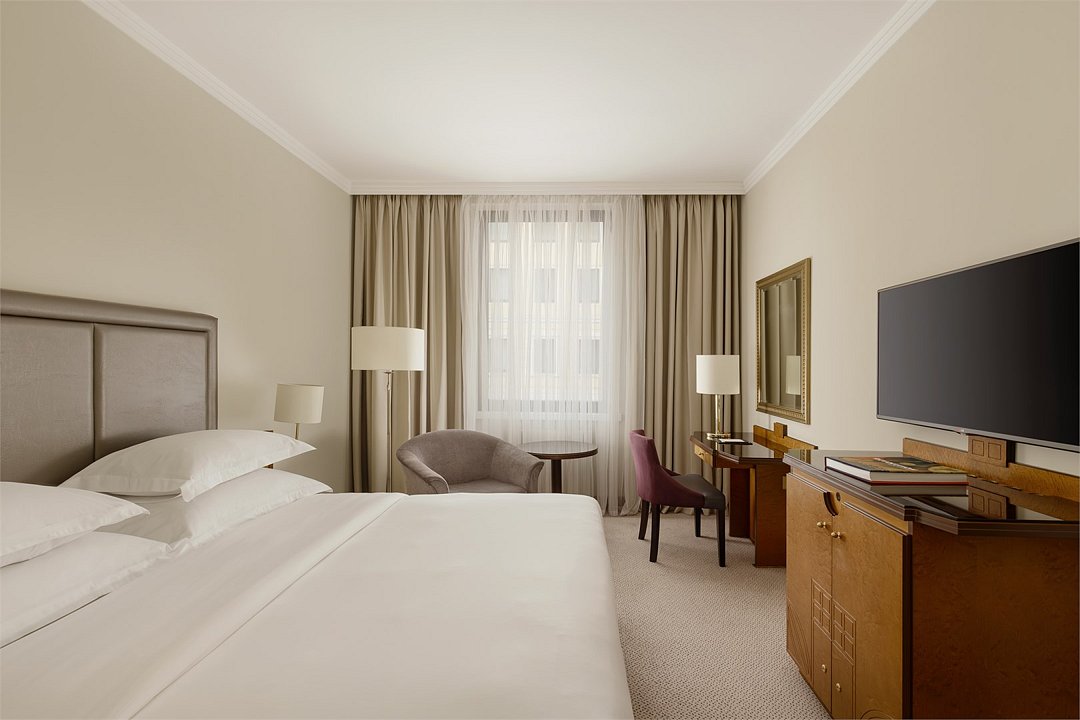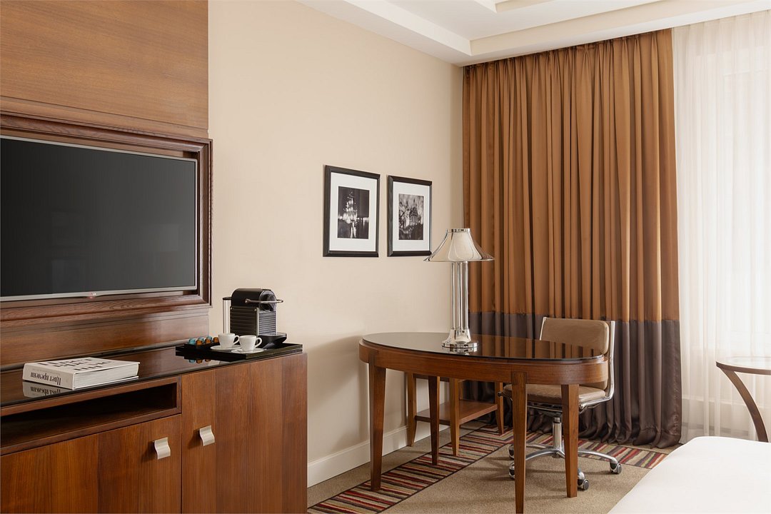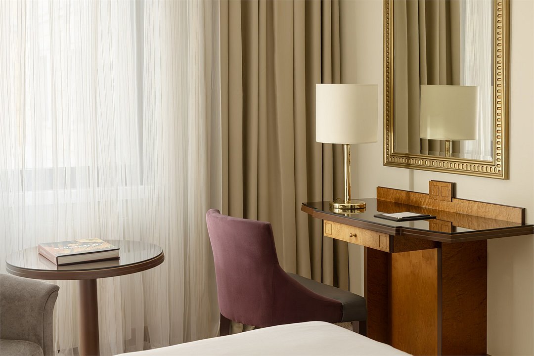 Wi-Fi, телефон, кондиционер, фен, ванная комната, халаты, тапочки, косметические средства, кровать «King size», диван, шкаф для одежды, багажная тумба, зеркало, чайный набор, обслуживание номеров, сейф, чайник, унитаз, питьевая вода, ковровое покрытие, отопление, вид на город, кресло, центральное кондиционирование, вид во двор, меню подушек, стул, тумба, туалетные средства, телевизор с плоским экраном, номер для некурящих, рабочий стол, мини-бар (платно)В гостиничном номере