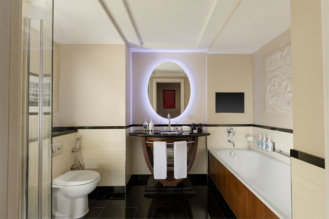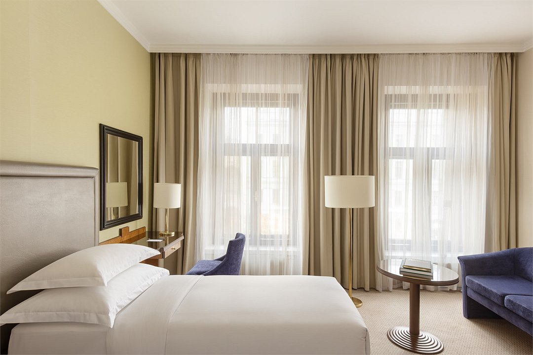 Респектабельный «Представительский полулюкс» с его роскошным оформлением в классическом стиле, значительным пространством для комфортной работы и спокойного отдыха, наполнен атрибутами роскоши, такими как мраморная ванная комната, кофемашина Nespresso и многими другими. Предметы искусства в интерьере и вид на элегантный внутренний дворик создают прекрасное настроение и оставляют яркие впечатленияУслуги и удобства
