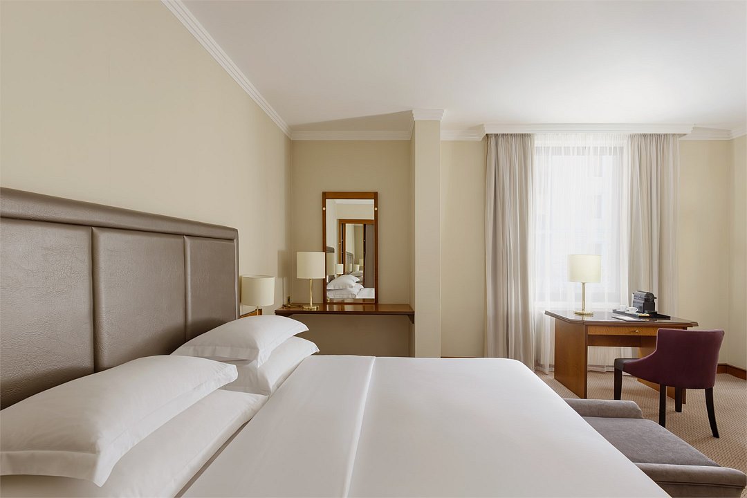 Просторный номер категории «Гранд Делюкс» прекрасно подходит для путешествующих семьей. Многие номера открывают вид на Невский проспект и исторический центр Санкт-Петербурга. По запросу бесплатно предоставляется детская кроватка. К услугам гостей: Кровать размера "king-size" Вид на исторический центр города или во внутренний дворик Мини-бар, сейф, фен ЖК-телевизор Косметические средства в ванной комнате, халаты, тапочки Питьевая вода для каждого гостя Чайные принадлежности Рабочее пространство со столом Комфортная софа для отдыха Бесплатный Wi-Fi Доступ в фитнес-центр с сауной Номер площадью 31 м2 (в среднем)Услуги и удобства