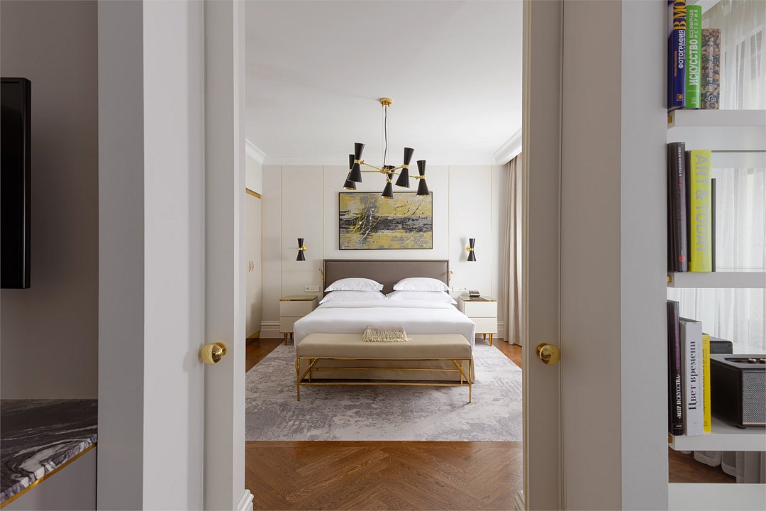 «Авторский люкс» с видом на Невский проспект - это стильные комфортабельные апартаменты, которые становятся для взыскательных гостей отеля идеальным домом в Санкт-Петербурге. Все тщательно продуманные детали этого респектабельного номера - от соблазнительной королевской кровати и изысканной ванной комнаты до прекрасного вида из окон и произведений искусства на стенах - создают гармоничный баланс между элегантной роскошью и современным комфортом.Услуги и удобства