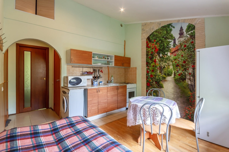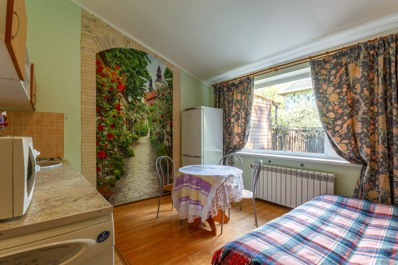 В таунхаусе отдельный вход и небольшой сад с террасой, в распоряжении гостей оборудованная кухня, имеется стиральная машина, оборудованная кухня с посудой и микроволновой печью.
