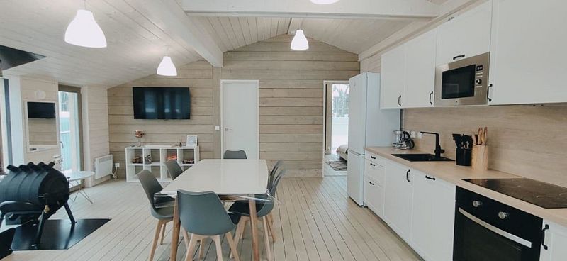 просторный дом со всеми удобствами, три спальни, необходимая мебель, кухонное оборудование, все для комфортного проживания до 8 человек.