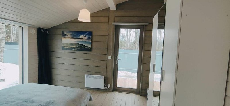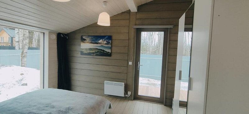 Уютный дом с печь-камином. Идеальный вариант для спокойного отдыха пар или семей. Панорамные окна во всю стену, большая кухня-гостиная, печь-камин, 3 уютные комнаты, один совмещённый санузел, баня с купелью. В доме есть всё необходимое для комфортного отдыха: постельное бельё, подушки, одеяла, полотенца, посуда, техника: микроволновка, посудомоечная машина, холодильник, варочная плита, чайник, кабельное ТВ, Wi-Fi.