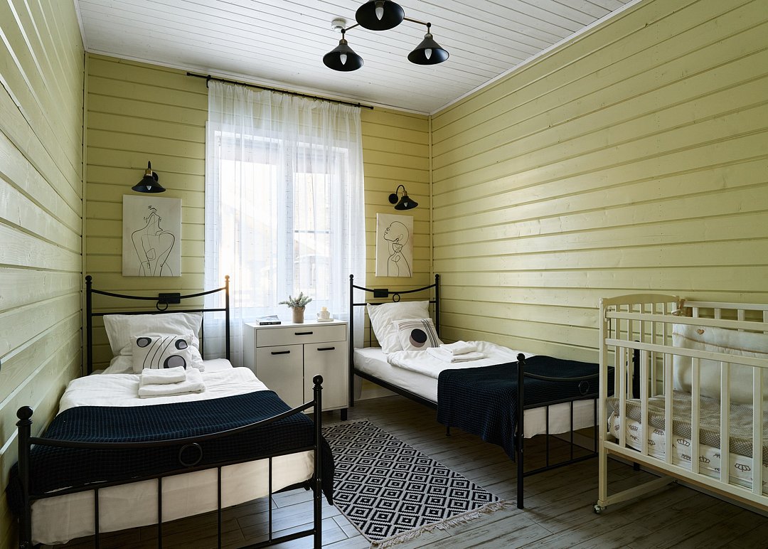 Две односпальные кровати, одна двуспальная кровать, одна диван-кровать, одна детская кроваткаУслуги и удобства