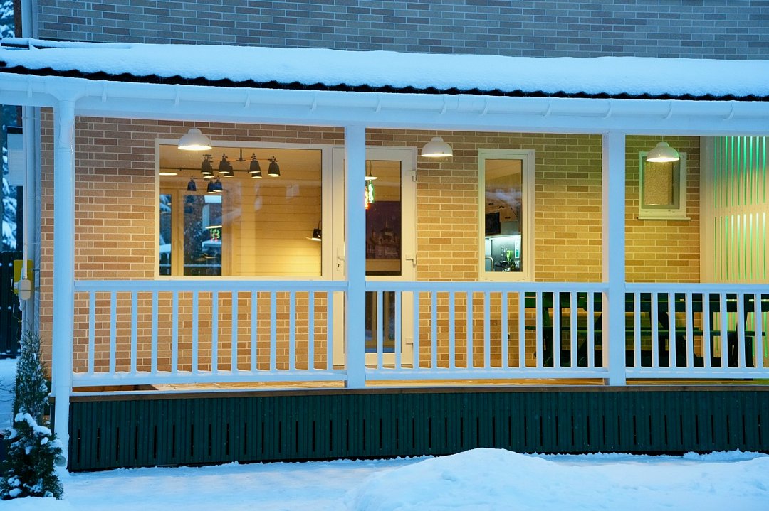 «Банька» представляет собой отдельное строение с уединённым внутренним двориком и большим панорамным окном из зоны отдыха.