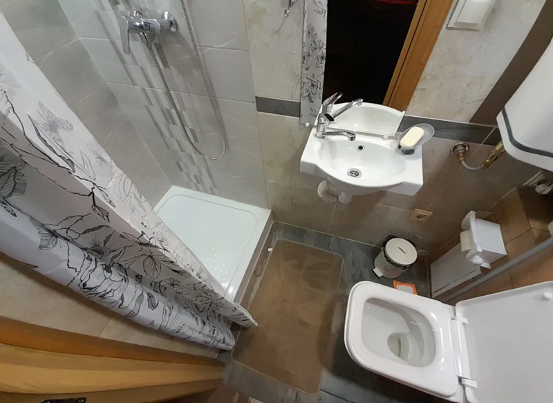 Небольшой уютный дом для спокойного семейного отдыха с собственной ванной комнатой и кухонной зоной.