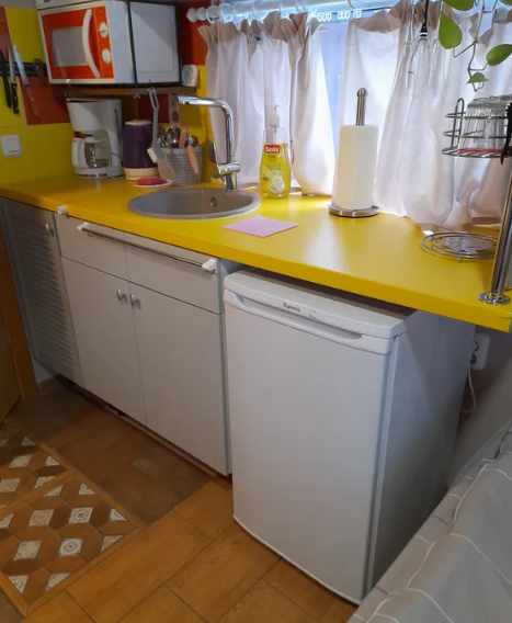 Небольшой дом для спокойного семейного отдыха, с кухонной зоной собственной ванной комнатой.