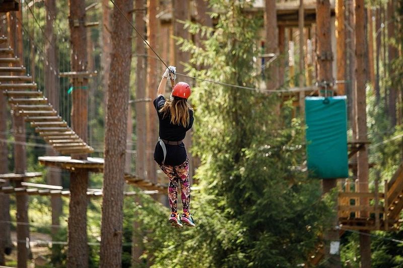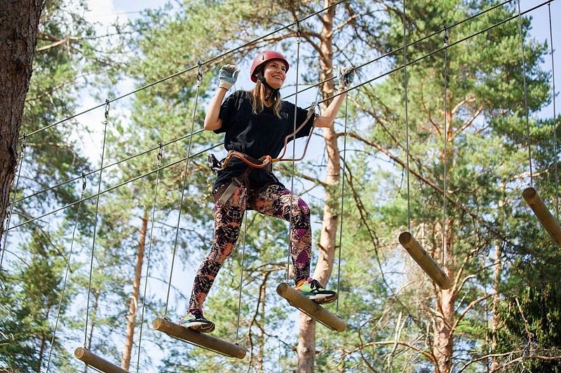 Семейный отдыхДостоинстваСадовники прекрасно выполняют свою работу, территория очень красивая. Веревочный парк - отличный вариант активного отдыха, а также есть прекрасное озеро. На воде также есть различные активности, такие как плавание на лодках и SUP-досках, нам понравилось.