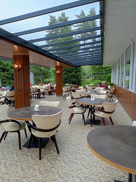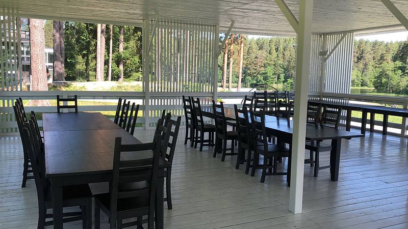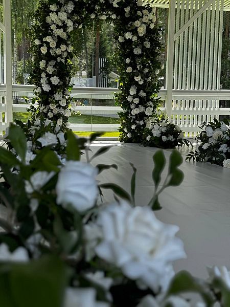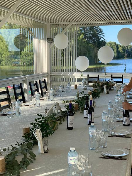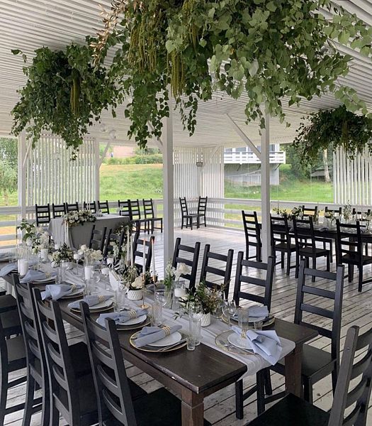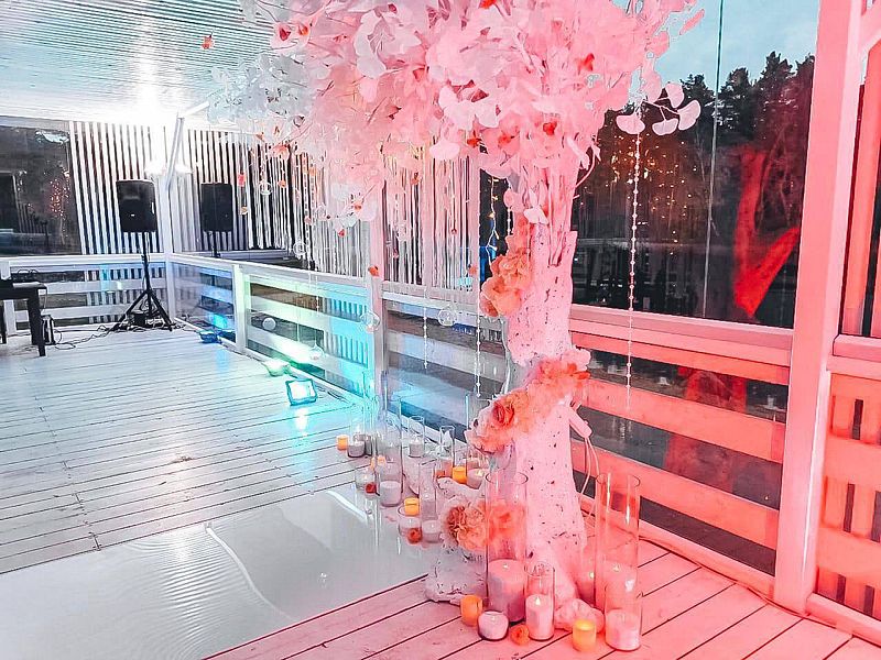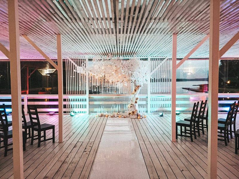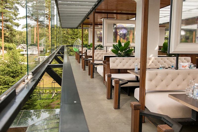 Просторная летняя терраса загородного комплекса идеально подходит для организации различных мероприятий, будь то свадебное торжество или иное знаменательное событие.