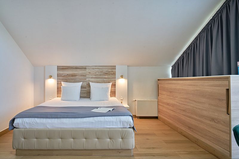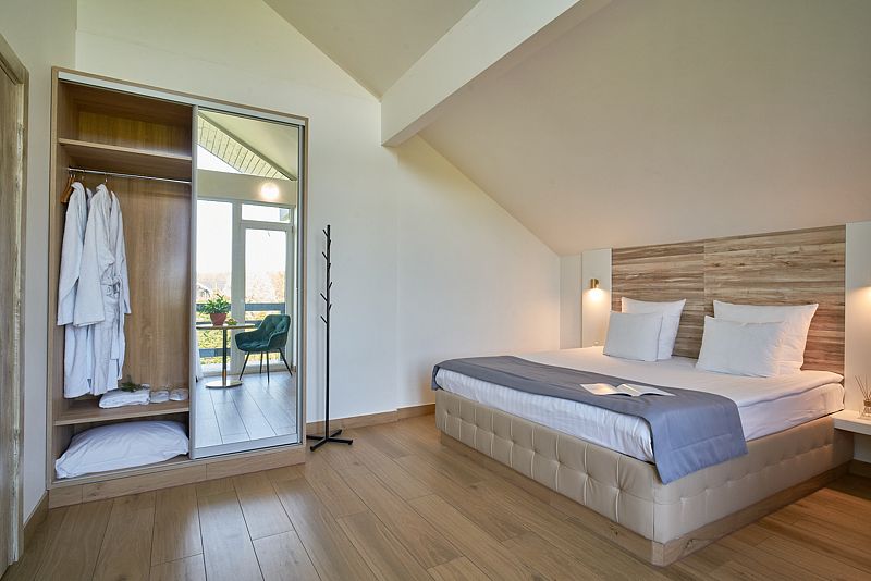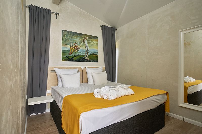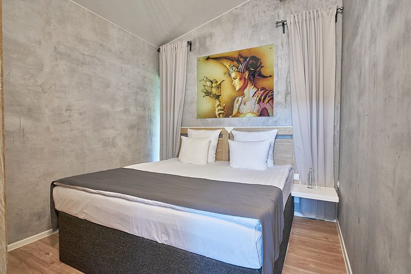 Улучшенный однокомнатный номер с современным дизайном и видом на территорию комплекса.
