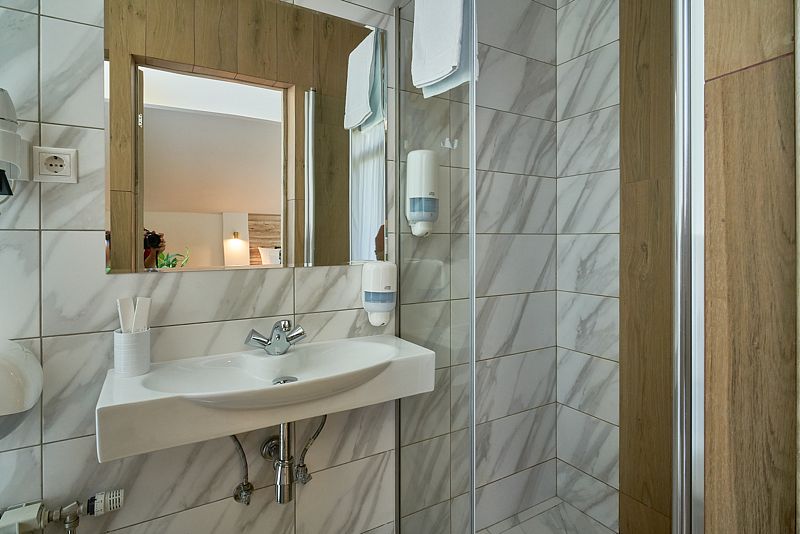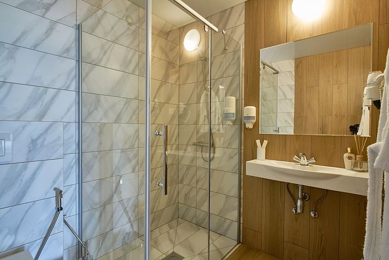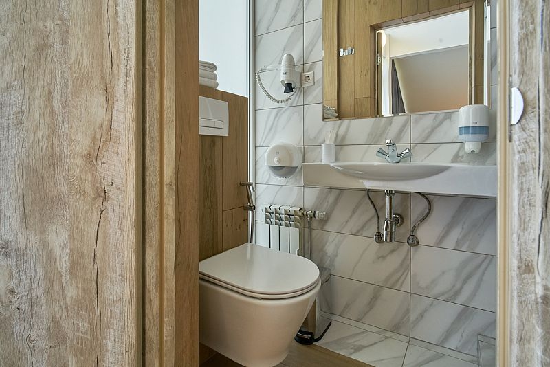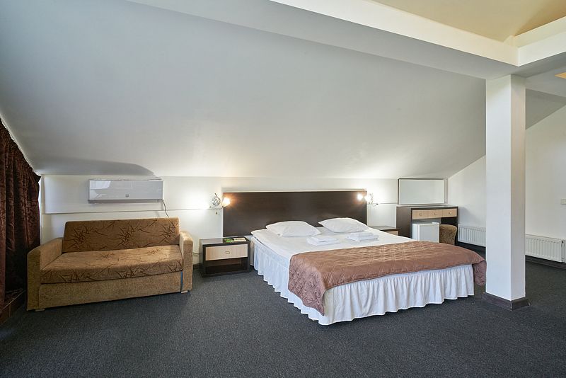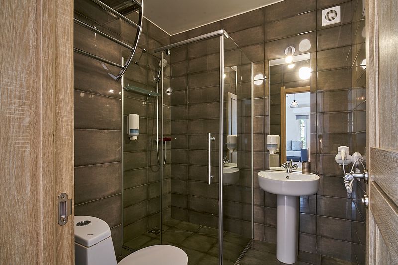 В номере: Двуспальная кровать, кровать-трансформер, Wi-Fi, ТV с плоским экраном и HDMI входом, мини холодильник, кондиционер, чайник, чашки, стаканы, постельное белье, набор полотенец, халаты, тапочки, зубной набор, чай и кофе, фен, диспенсер с гель-шампунем, собственная ванная комната с санузлом.