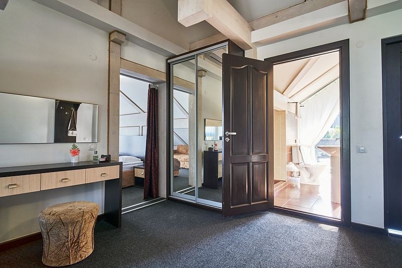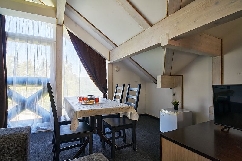 В номере: двуспальная кровать, кровать-трансформер, собственная полноценная кухня с газовой варочной панелью на 2 конфорки, холодильник, микроволновая печь, стол, стулья, набор посуды и столовые принадлежности, чайник, чашки, стаканы, набор чая и кофе, Wi-Fi, ТV с плоским экраном и HDMI входом, кондиционер, постельное белье, набор полотенец, халаты, тапочки, зубной набор, фен, диспенсер с гель-шампунем, собственная ванная комната с санузлом.