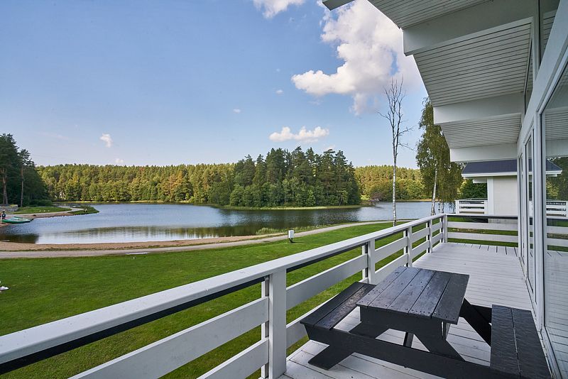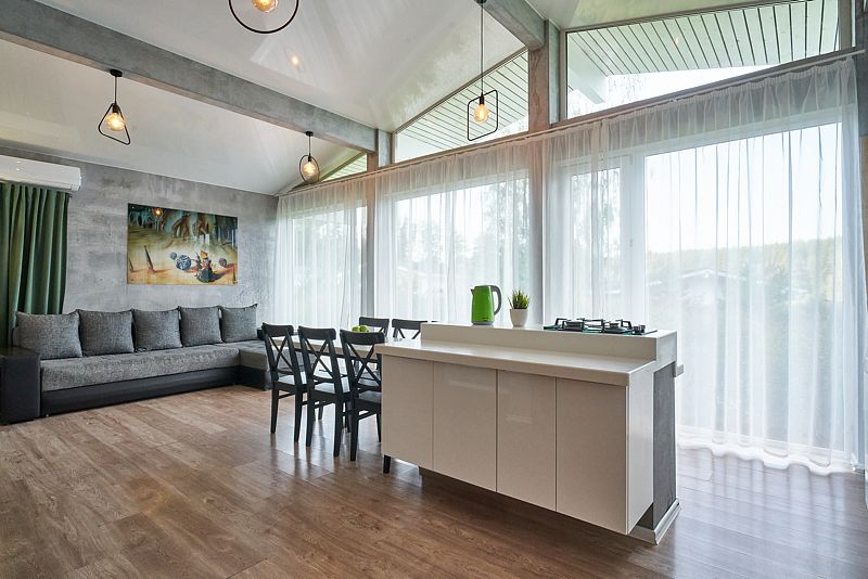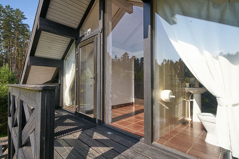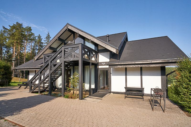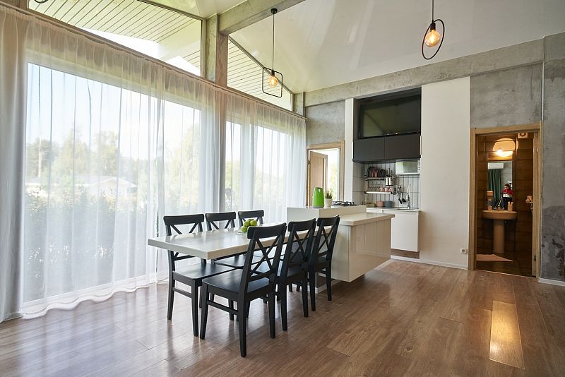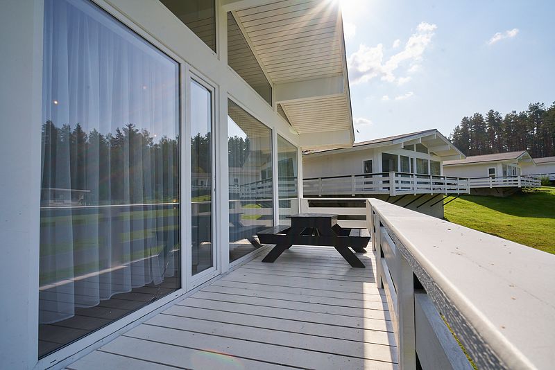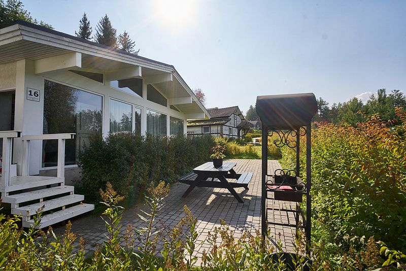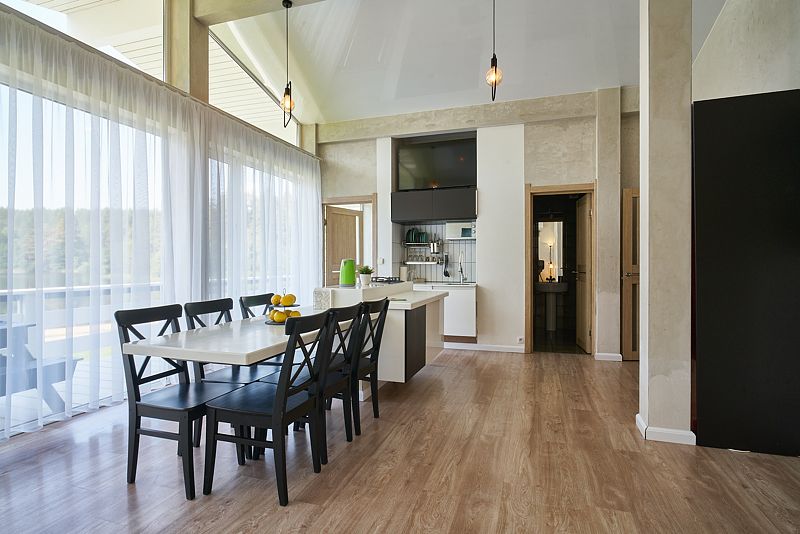 Дизайнерский одноэтажный дом в стиле фахверк с панорамным остеклением, располагается недалеко от озера. Вилла оснащена кухней с гостиной, тремя отдельными спальнями с двуспальными кроватями размера king size, собственной ванной комнатой с санузлом, гигиеническим душем и феном.