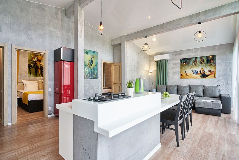 Улучшенный однокомнатный номер с полноценной кухней, современным дизайном и видом на сад.