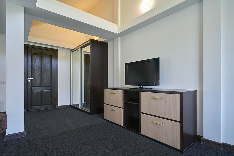 В номере: Двуспальная кровать, диван, шкаф, ТV с плоским экраном и HDMI входом, мини холодильник, кондиционер, чайник, чашки, стаканы, постельное белье, набор полотенец, диспенсер с гель-шампунем, собственная ванная комната с санузлом.