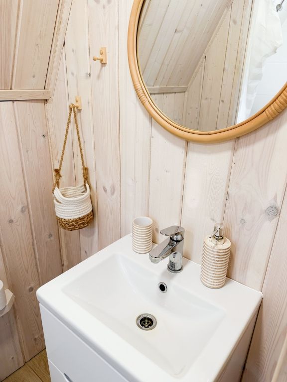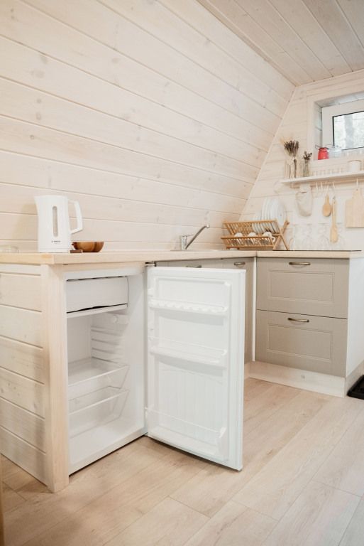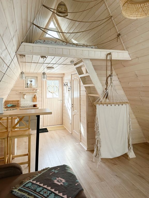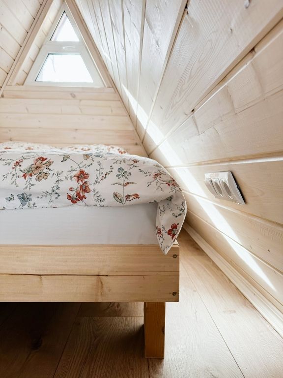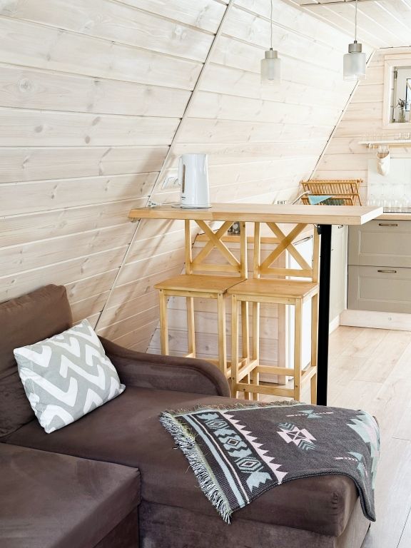 Каждый домик оборудован мягкой, уютной кроватью, всей необходимой мебелью и электричеством. Есть собственная кухня с электрической плитой и санузел с душевой кабиной. В домиках есть Wi-Fi, полотенца, постельное белье и посуда.