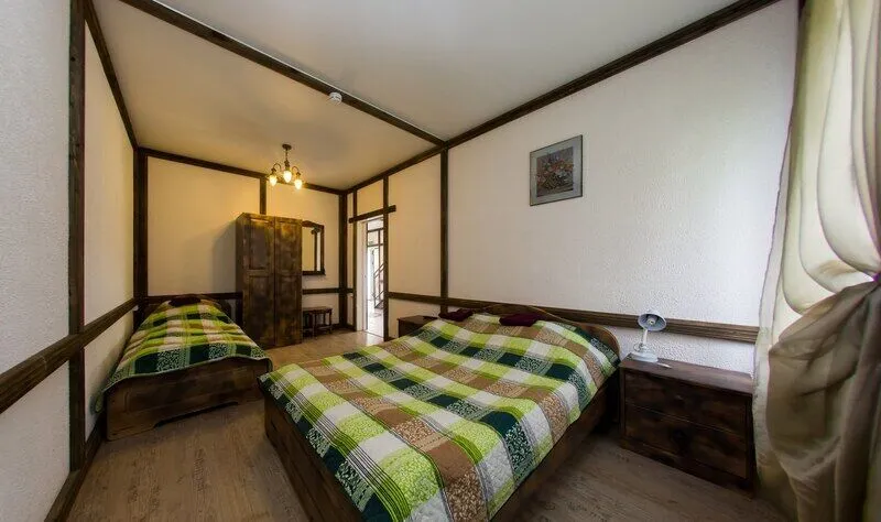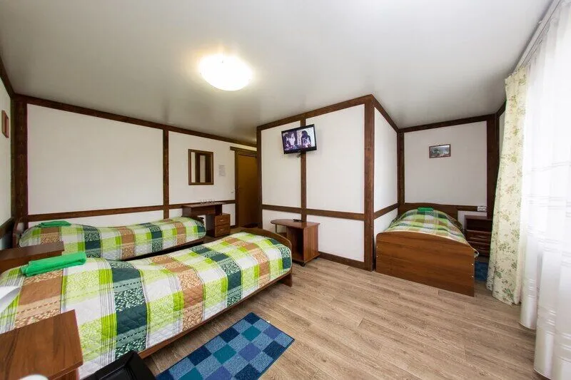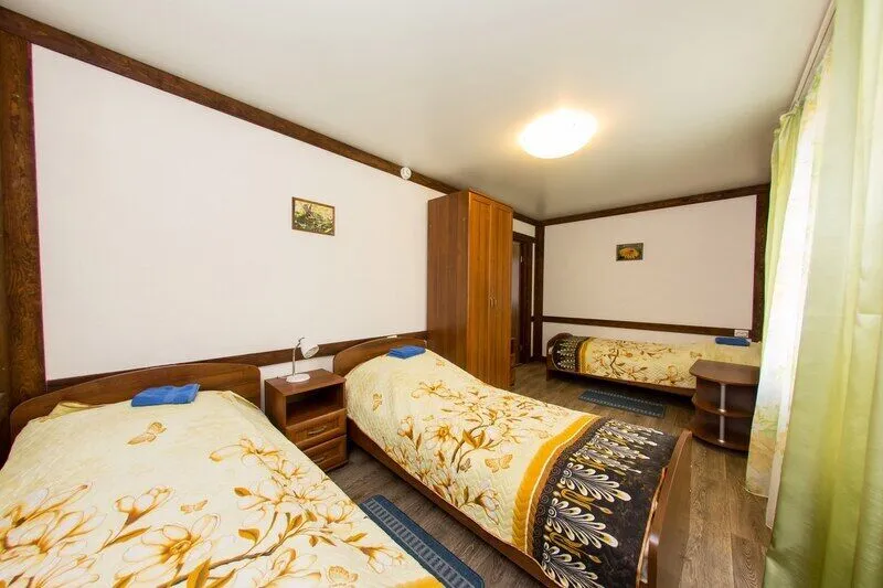 Шесть трехместных номеров на 1-ом этаже. Каждый номер имеет свой вход с улицы, оборудован всем необходимым для комфортного размещения 3-х человек: