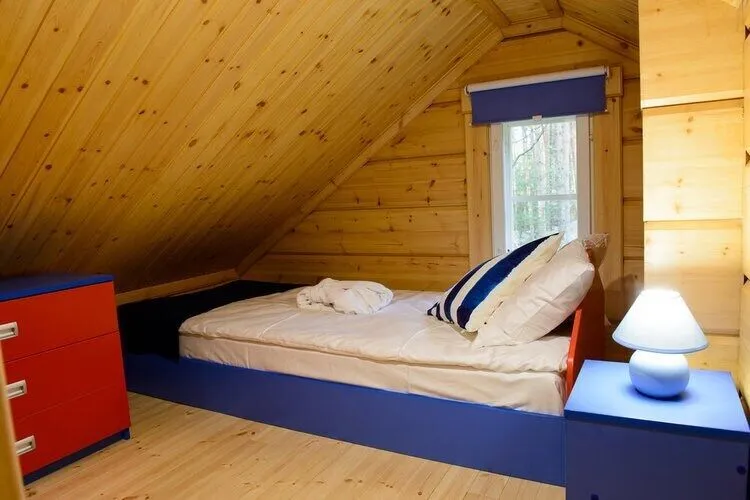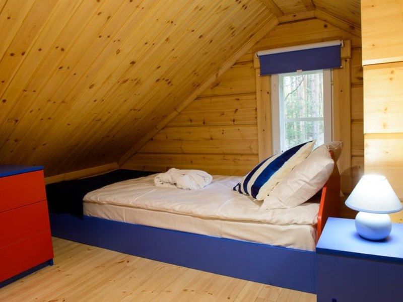 На мансардном этаже расположены 2 односпальные кровати, подходящие по размеру как для детей, так и для взрослых.