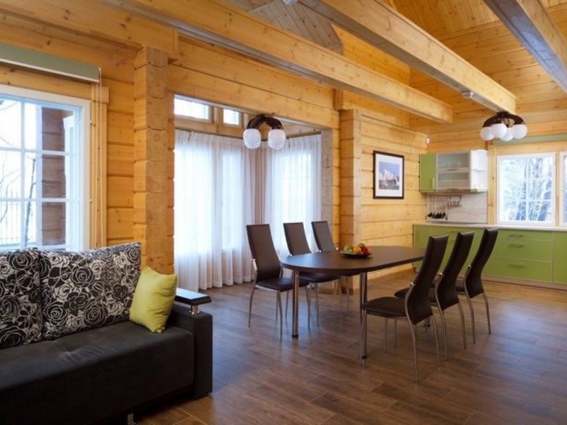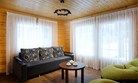 Первое, что бросается в глаза — как здесь светло и просторно. Панорамные окна выходят в лес, а в большой гостиной хватит места, чтобы поставить детскую кроватку или разместить дополнительные спальные места на раскладывающемся диване.