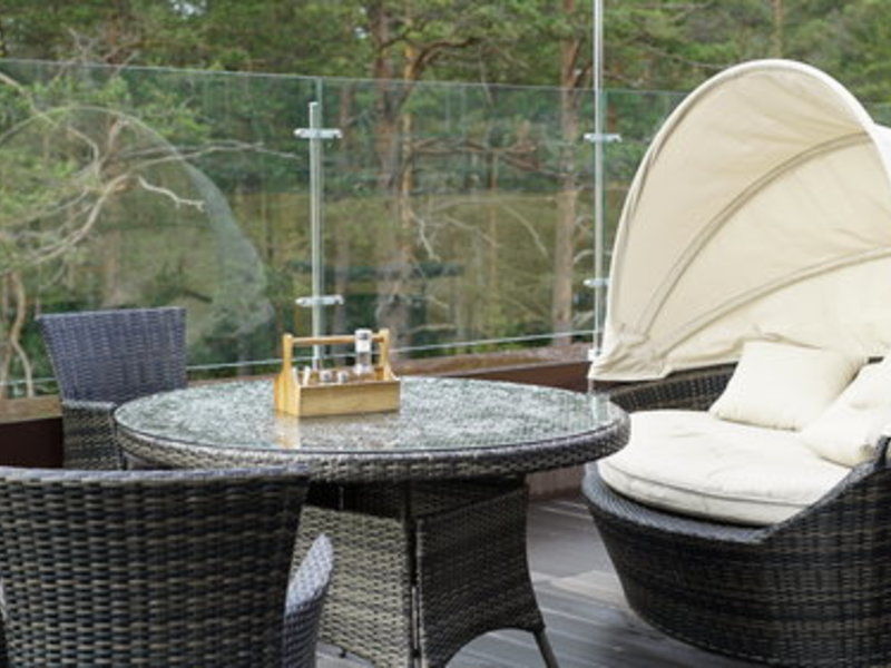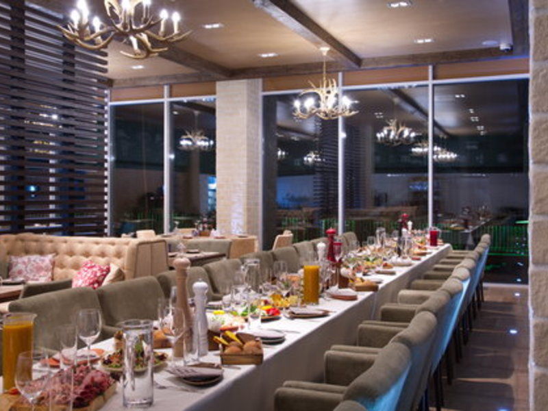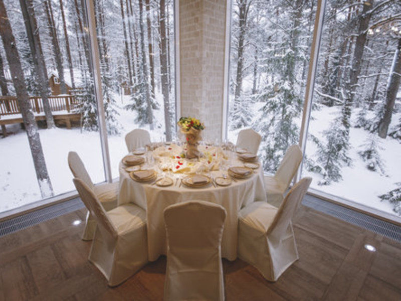 На крыше ресторана работает бар-терраса, с которого открывается восхитительный вид – в окружении сказочных верхушек сосен вы забудете о городской суете и вдоволь надышитесь свежим воздухом.