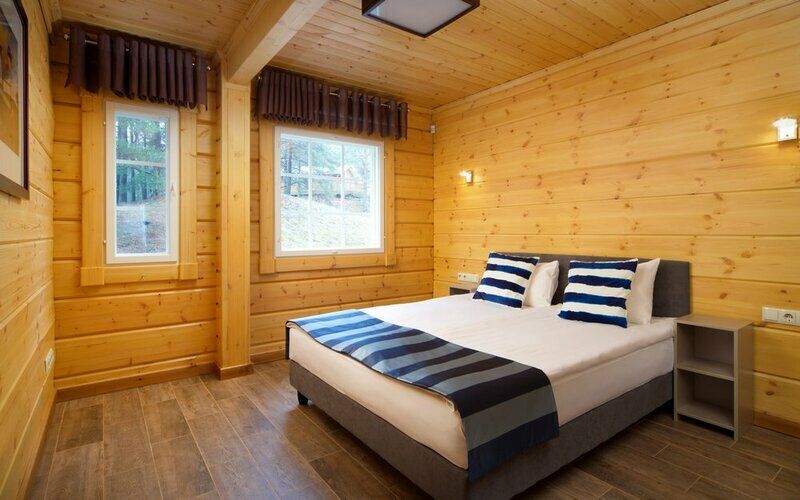 Еще одна особенность этих коттеджей - это большие двуспальные кровати, которые придутся по душе любителям простора.