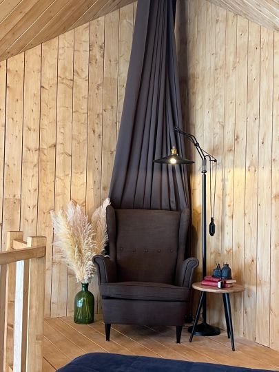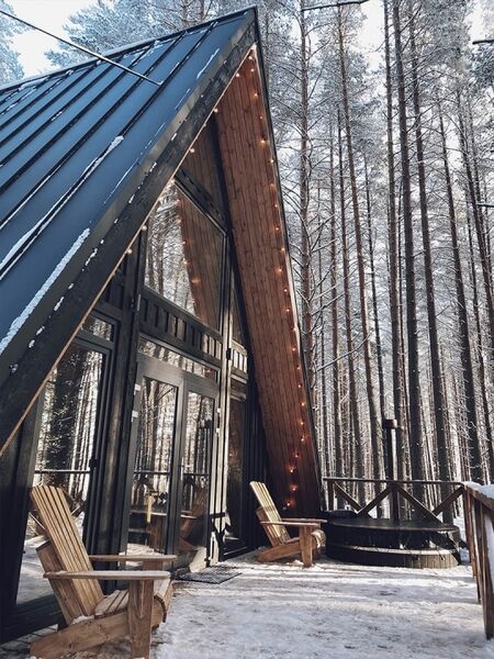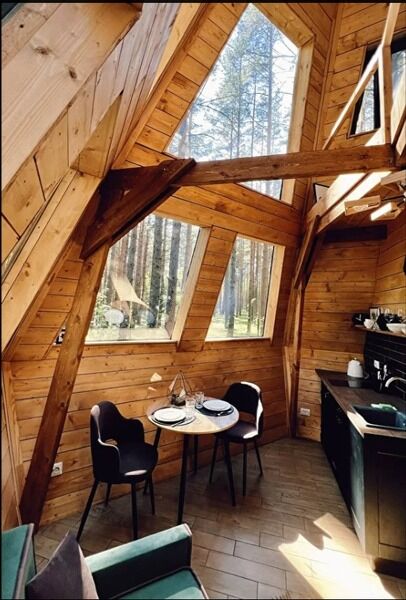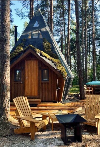 Уникальные пятиугольные хижины в лесу, просторные террасы, горячая купель на террасе дома — вот то, что сделает Ваш отдых незабываемым. Вас не покинет ощущение того, что Вы приехали в свой уютный лесной дом, где всё готово для спокойного отдыха вдали от суеты. Помогут в этом свечи и уютные пледы, солнечные лучи сквозь стеклянный фасад, мягкий ковёр у кровати, вдохновляющие книги и абсолютная тишина.