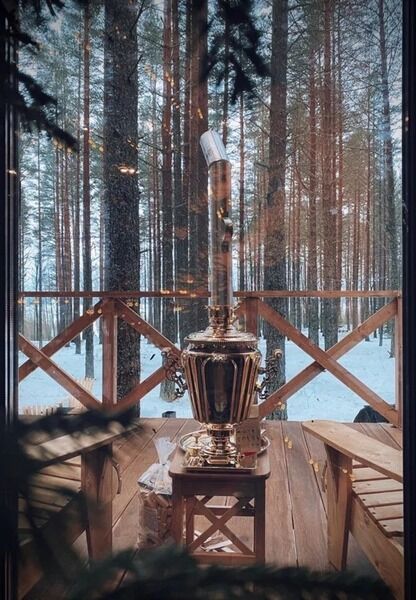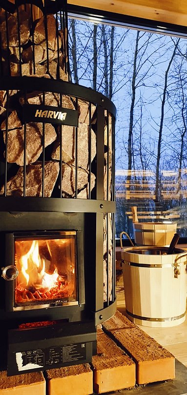 Купель на террасе, зона для отдыха у костра и уникальная волшебная атмосфера.