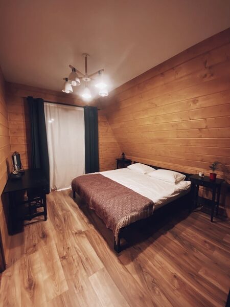 Семейный отдыхДостоинстваТерритория небольшая, но оформлена красиво. На ресепшене приятный администратор. Домик Хижина внутри уютный, комфортный и подготовленный для проживания. Система умного дома поддерживает необходимую температуру в доме, так что, не холодно. Дополнительно есть вариант арендовать баню.
