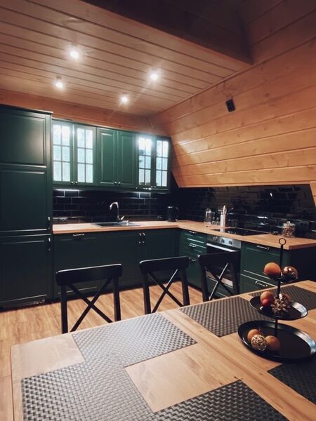 Дом идеально подходит для большой семьи или компании 6–10 друзей. Он включает 4 спальни, 2 санузла и просторную кухню-гостиную с камином и прекрасно оборудованной зоной для приготовления вкусной и полезной еды.