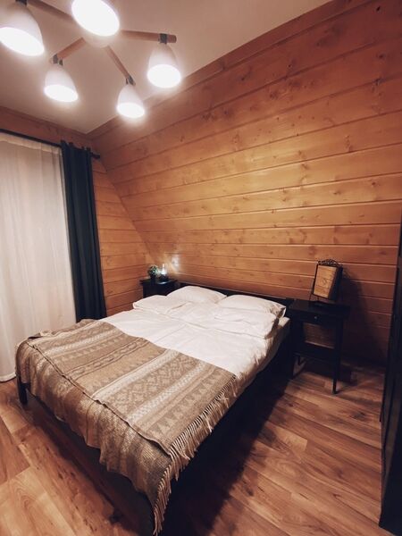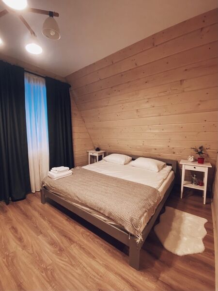 Небольшой, очень уютный одноэтажный дом включает в себя оборудованную кухню, полноценный санузел, множество декора и спальное место 160х200. На террасе дома расположилась горячая купель, рядом с домом мангал и чаша для отдыха у костра.
