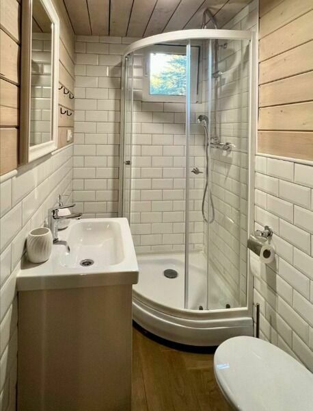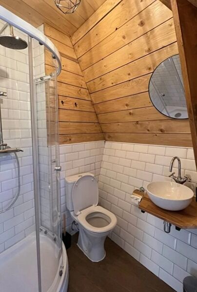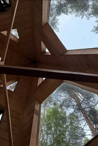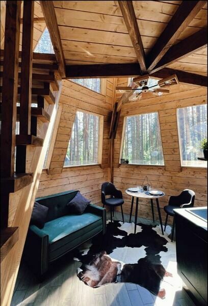 Уникальный проект — роскошная пятиугольная лесная Хижина. Дом, наполненный светом, теплом и красотой. Уютная кухня-гостиная и санузел. Теплые полы и система охлаждения обеспечивают комфортную температуру в любой сезон.