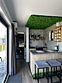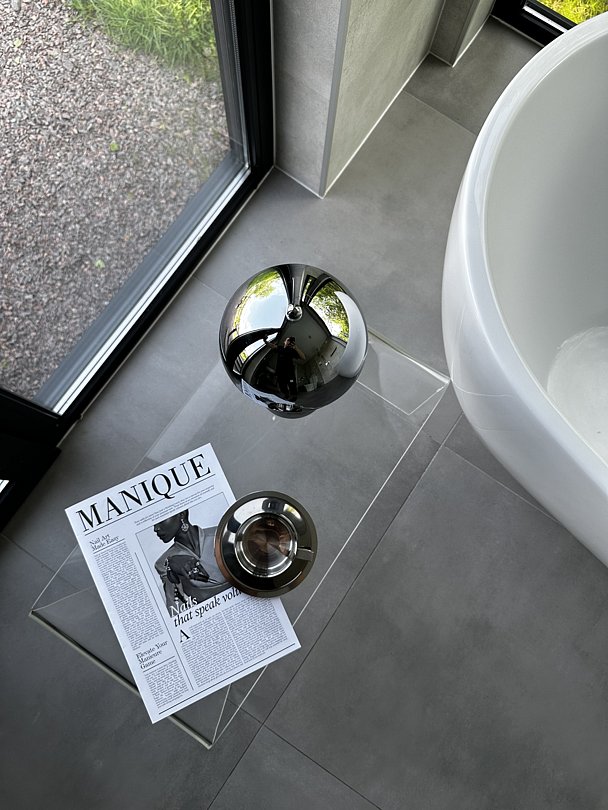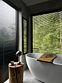 Домик с панорамной ванной комнатой исполненной в светло-серых тонах в стиле лофт бетон.