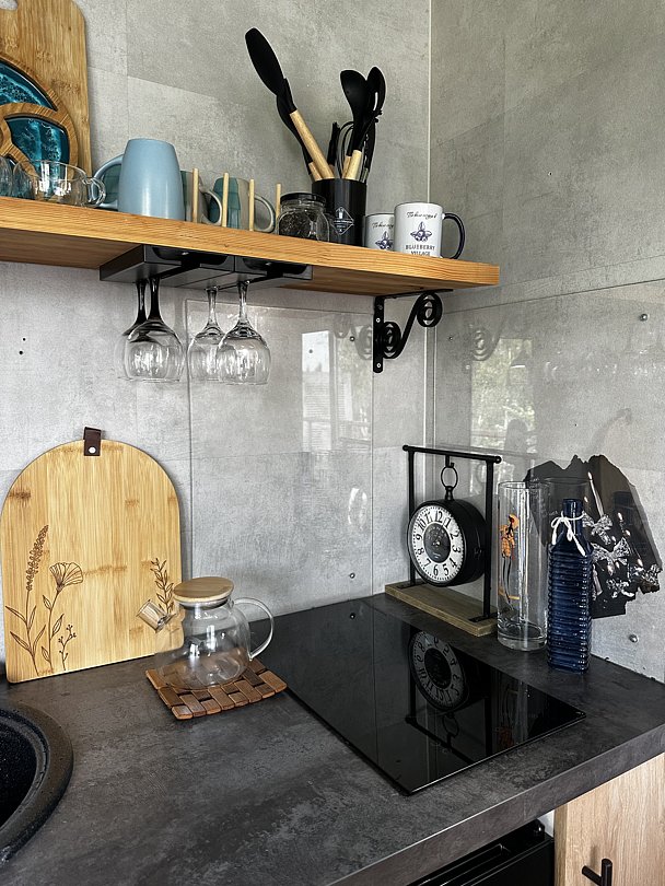 - кухня гостиная: посуда на 4 персоны, плита, холодильник, микроволновая печь, чайник, телевизор, кондиционер-обогреватель;