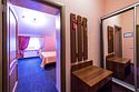 В номере: двуспальная кровать, 2 раскладных кресла, двуспальный диван, 2 прикроватные тумбы, плазменная панель, телефон, холодильник, трюмо, 4 стула, шкаф-купе (принадлежности для одежды и обуви), душевая кабина с гидромассажем, косметические принадлежности, комплект полотенец + халаты, тапочки и фен, мини-бар, кухня оборудована всем необходимым: чайник, микроволновая печь, кулер с холодной и горячей водой В стоимость проживания входит: - Посещение утренней сауны с двухуровневым бассейном и бани. В будние дни — с 7:00 до 10:00, в выходные до 11:30; - Пользование террасой с мангалом; - Wi-fi. В некоторых номерах разрешено проживание с животными. Доплата за проживание с собакой в Токсово - 600 руб/сутки за карманную собаку (до 30 см); 1000 руб/сутки за большую собаку (от 30 см) + залог 3000 руб. (вносится наличными). При заселении в отель каждому гостю необходимо предъявить документ удостоверяющий личность (паспорт). Для детей до 14 лет необходимо предъявление свидетельства о рождении. Для заселения несовершеннолетних детей без родителей необходимо предъявить нотариально заверенную доверенность (для детей до 14 лет доверенность должна быть на сопровождающее лицо, для детей старше 14 лет доверенность может быть оформлена на ребенка).Услуги и удобства