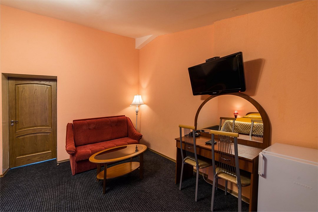 Просторные однокомнатные номера с двухместным размещением, выполненные в мягких пастельных тонах, в некоторых номерах дополнительная мягкая мебель. В номере: 1 двуспальная кровать, 1 раскладное кресло (в номере 212,211,110), в номере 210 раскладное кресло в номере отсутствует, 1 раскладной диван (в номере 209, 301), журнальный столик (в номерах 301, 209 и 212), 2 прикроватные тумбы, плазменная панель, телефон, холодильник, трюмо, 2 стула - шкаф-купе (принадлежности для одежды и обуви), ванная, комплект полотенец, мини-бар В стоимость проживания входит: - Посещение утренней сауны с двухуровневым бассейном и бани. В будние дни — с 7:00 до 10:00, в выходные до 11:30; - Пользование террасой с мангалом; - Wi-fi. Размещение взрослых и детей на дополнительных местах оплачивается согласно прайсу в зависимости от категории выбранного номера. Информацию о стоимости необходимо уточнить у отеля. Все детские кроватки и дополнительные кровати предоставляются за дополнительную плату (согласно прайсу отеля) при наличии возможности. В некоторых номерах разрешено проживание с животными. Доплата за проживание с собакой в Токсово - 600 руб/сутки за карманную собаку (до 30 см); 1000 руб/сутки за большую собаку (от 30 см) + залог 3000 руб. (вносится наличными). При заселении в отель каждому гостю необходимо предъявить документ удостоверяющий личность (паспорт). Для детей до 14 лет необходимо предъявление свидетельства о рождении. Для заселения несовершеннолетних детей без родителей необходимо предъявить нотариально заверенную доверенность (для детей до 14 лет доверенность должна быть на сопровождающее лицо, для детей старше 14 лет доверенность может быть оформлена на ребенка).Услуги и удобства