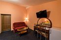 Просторные номера с кухней и балконом, выполненные в мягких пастельных тонах. Количество номеров – 1 Однокомнатные апартаменты с кухней - двухместное размещение В номере: двуспальная кровать, 1 раскладное кресло, двуспальный диван, 2 прикроватные тумбы, плазменная панель, телефон, холодильник, трюмо, 2 стула, шкаф-купе (принадлежности для одежды и обуви), душевая кабина с гидромассажем, косметические принадлежности, комплект полотенец + халаты, тапочки и фен, мини-бар, кухня оборудована всем необходимым: чайник, микроволновая печь, кулер с холодной и горячей водой В стоимость проживания входит: - Посещение утренней сауны с двухуровневым бассейном и бани. В будние дни — с 7:00 до 10:00, в выходные до 11:30; - Пользование террасой с мангалом; - Wi-fi. Размещение взрослых и детей на дополнительных местах оплачивается согласно прайсу в зависимости от категории выбранного номера. Информацию о стоимости необходимо уточнить у отеля. Все детские кроватки и дополнительные кровати предоставляются за дополнительную плату (согласно прайсу отеля) при наличии возможности. В некоторых номерах разрешено проживание с животными. Доплата за проживание с собакой в Токсово - 600 руб/сутки за карманную собаку (до 30 см); 1000 руб/сутки за большую собаку (от 30 см) + залог 3000 руб. (вносится наличными). При заселении в отель каждому гостю необходимо предъявить документ удостоверяющий личность (паспорт). Для детей до 14 лет необходимо предъявление свидетельства о рождении. Для заселения несовершеннолетних детей без родителей необходимо предъявить нотариально заверенную доверенность (для детей до 14 лет доверенность должна быть на сопровождающее лицо, для детей старше 14 лет доверенность может быть оформлена на ребенка).Услуги и удобства