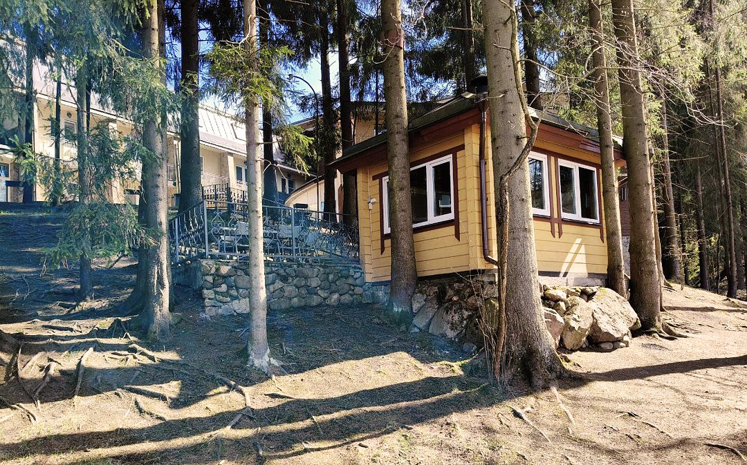 Для проживающих в отеле «Домик Охотника» утреннее посещение финской сауны входит в стоимость проживания: по будням — с 7:00 до 10:00, по выходным — до 11:30. После указанного времени аренда сауны оплачивается отдельно. При аренде в стоимость посещения входят простыни.