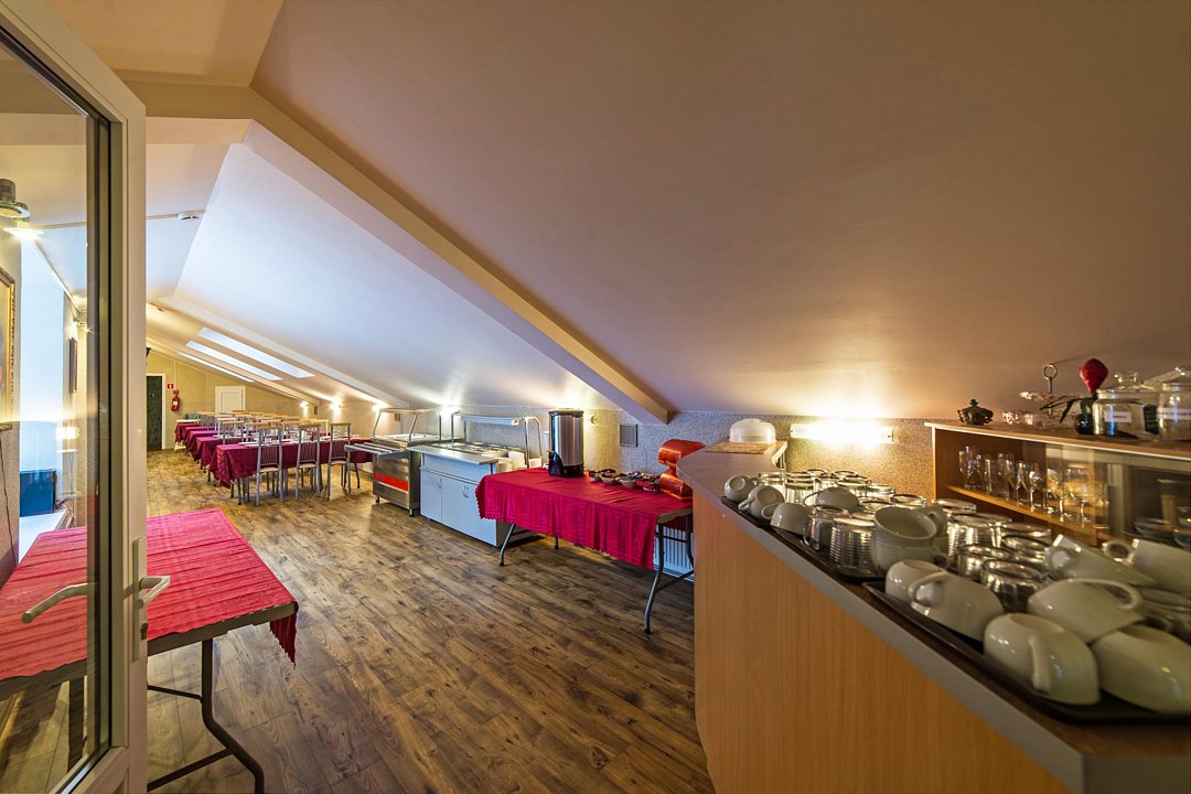 Уютное кафе, где гостям предложат широкий выбор блюд на завтрак и обед. Ассортимент меню включает разнообразные салаты, закуски, горячие блюда, гарниры, соусы, десерты и напитки. Кафе работает до 20:00, прием заказов по меню осуществляется до 19:00.