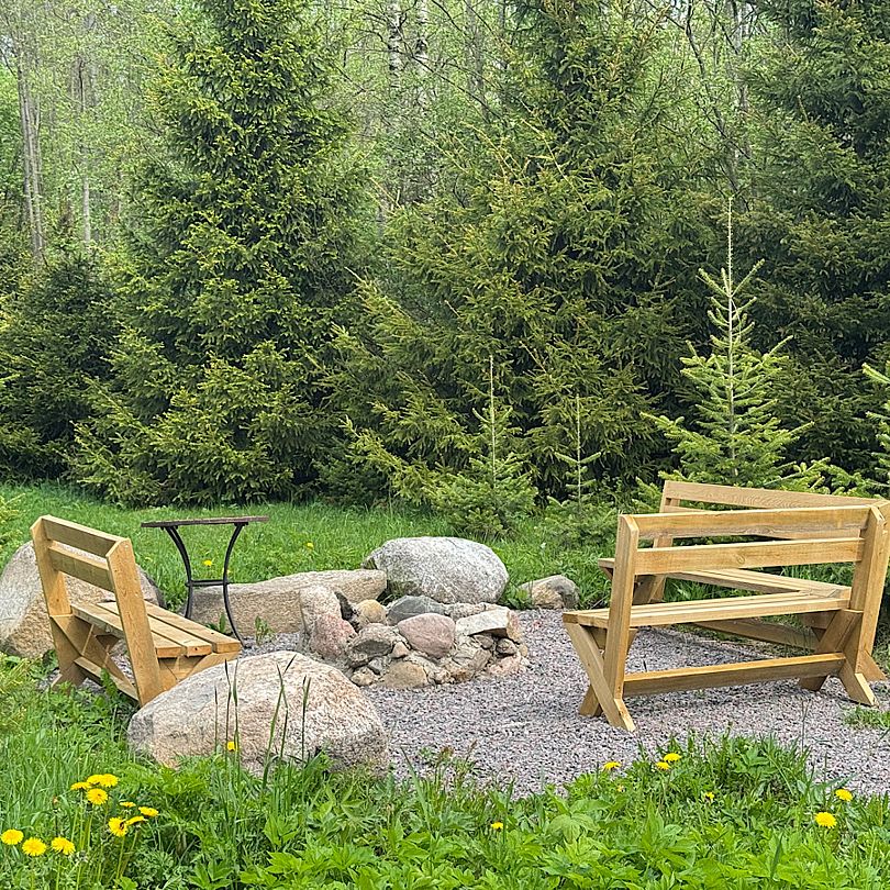 - костровая зона со скамейками в уединенной лесной опушке;