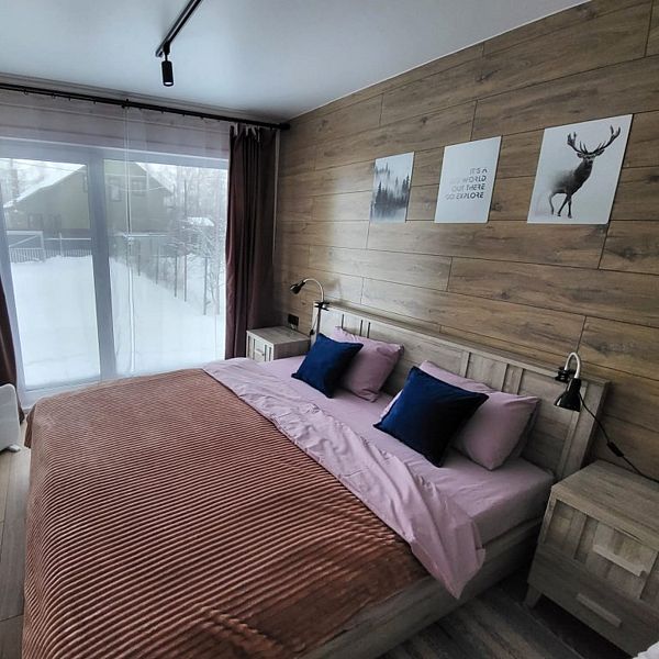 В доме расположены две спальни с двуспальными кроватями, гостиная с диваном и оборудованная кухня. Для удобства гостей предоставляются холодильник, посудомоечная машина, электрическая плита, стиральная машина, посуда, телевизор, доступ к сети Wi-Fi.