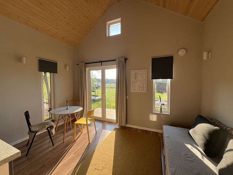 Коттедж оснащен кондиционером, гриль-барбекю, эксклюзивным постельным бельем, затемнёнными шторами, обеденной зоной, холодильником и феном. Полностью оборудованная кухня для самостоятельного приготовления еды..