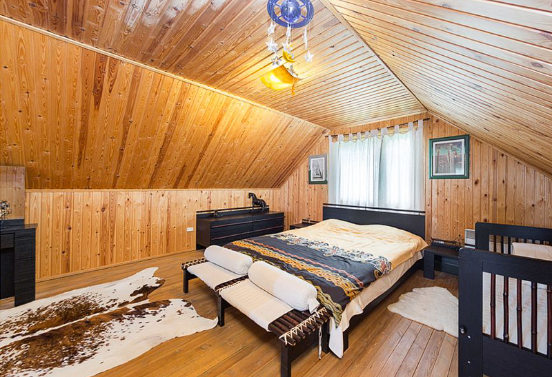 В Гостевом домике: баня на 1-м этаже дома располагается комната отдыха с камином, оборудованная кухня, санузел с душевой кабиной и парилка. На 2-м этаже: большая 2-х спальная кровать и кроватка для ребенка и терраса с видом на лес и озеро.