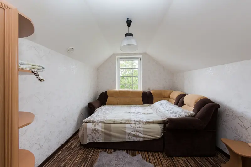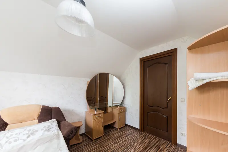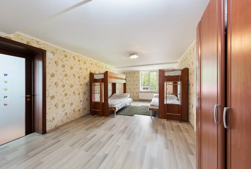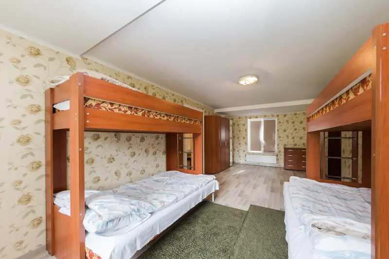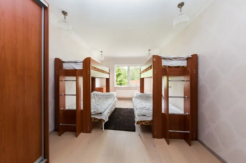 На 1 этаже коттеджа, с отдельного входа, располагаются дополнительные 2 спальные комнаты с общим санузлом. Комнаты оснащены 2-х ярусными кроватями, холодильником, чайником и микроволновой печью.